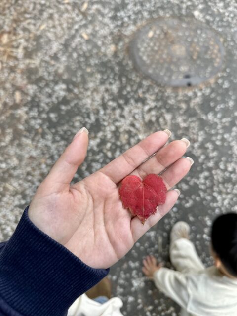 拾った赤い落ち葉を渡してくれました🍂